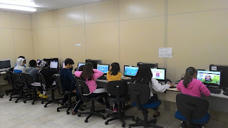 Projeto Arkos esta a todo vapor, a cada 15 dias os alunos visitam o sala informatizada para responder as perguntas(quiz) dos livros disponibilizados online e físicos que eles retiram na biblioteca.